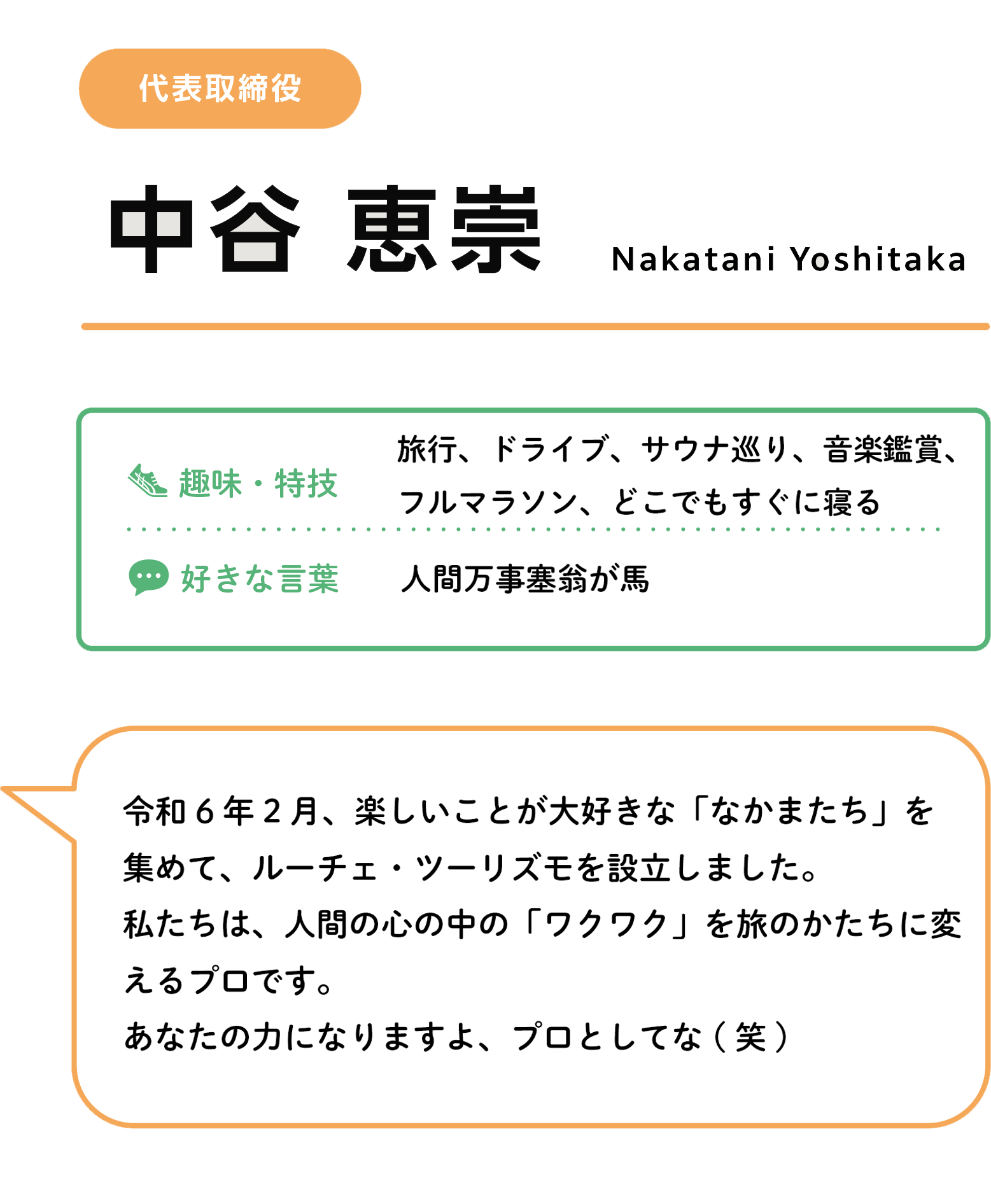 代表取締役  中谷 恵崇(なかたに よしたか)